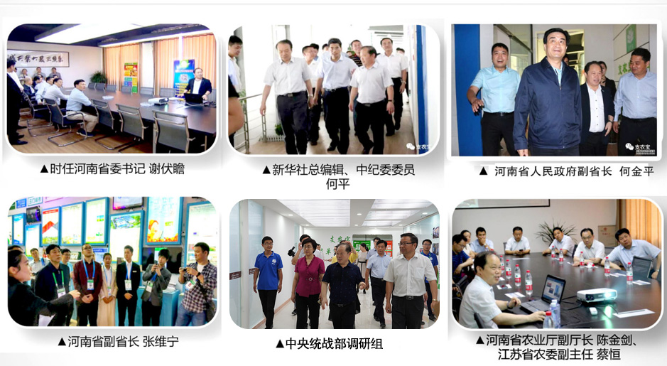 支農(nóng)寶的發(fā)展得到各級(jí)領(lǐng)導(dǎo)的關(guān)心和支持。時(shí)任河南省委書記謝伏瞻,河南省副省長(zhǎng)何金平,新華社總編、中紀(jì)委委員何平,國(guó)家發(fā)改委調(diào)研組,河南省政協(xié)副主席、工商聯(lián)主席梁靜,團(tuán)省委書記王藝,全國(guó)青聯(lián)主席李榮,中央統(tǒng)戰(zhàn)部調(diào)研組,市委、市政府和睢陽區(qū)委區(qū)政府主要領(lǐng)導(dǎo)等都曾蒞臨支農(nóng)寶調(diào)研,并給予很高的評(píng)價(jià)。